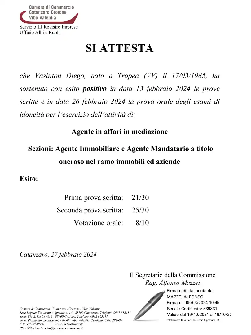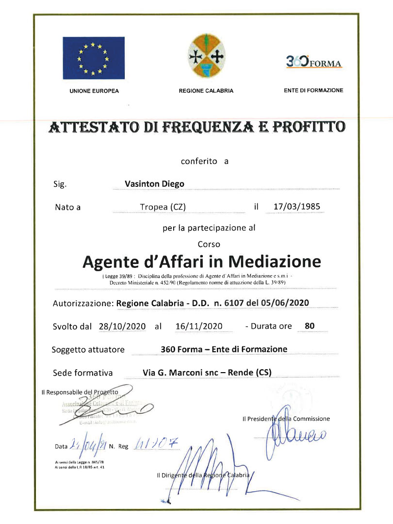 Attestato di Agente di Affari in Mediazione